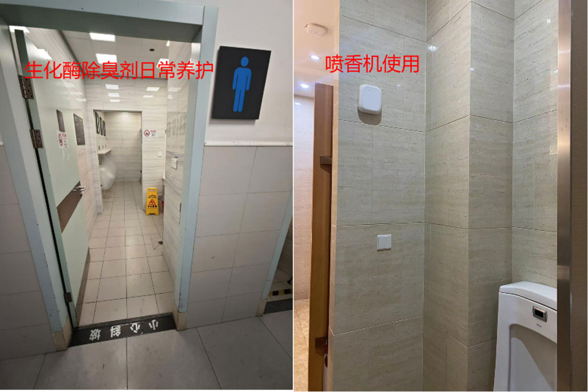 问题:传统厕所因有机物残留(如尿液、粪便)滋生细菌,产生氨气、硫化氢等异味,且人工喷洒空气清新剂时效短、覆盖率低,导致异味反复,用户投诉率高。